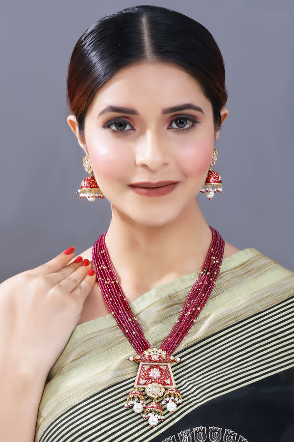 Ishika Red Polki Kundan Neckpiece