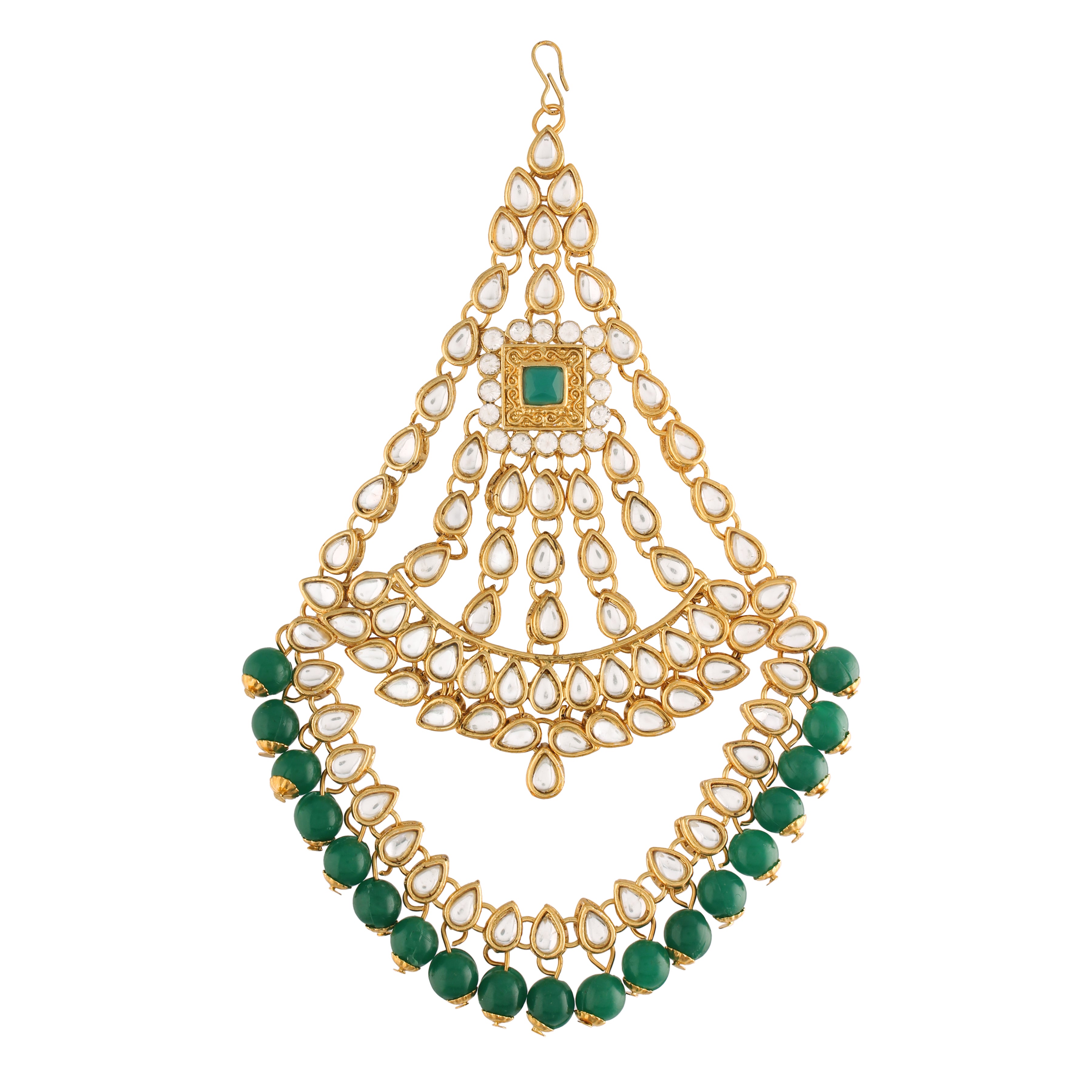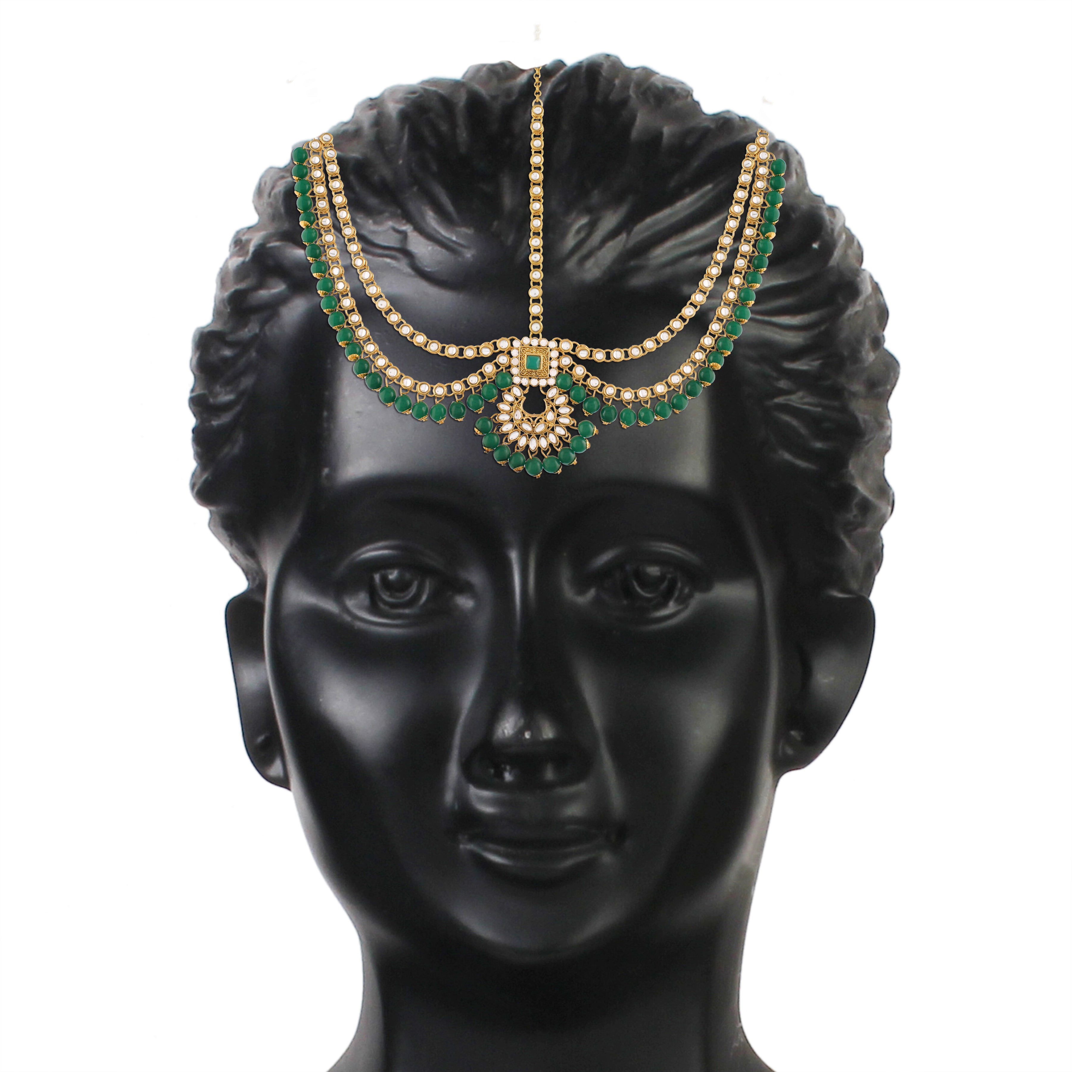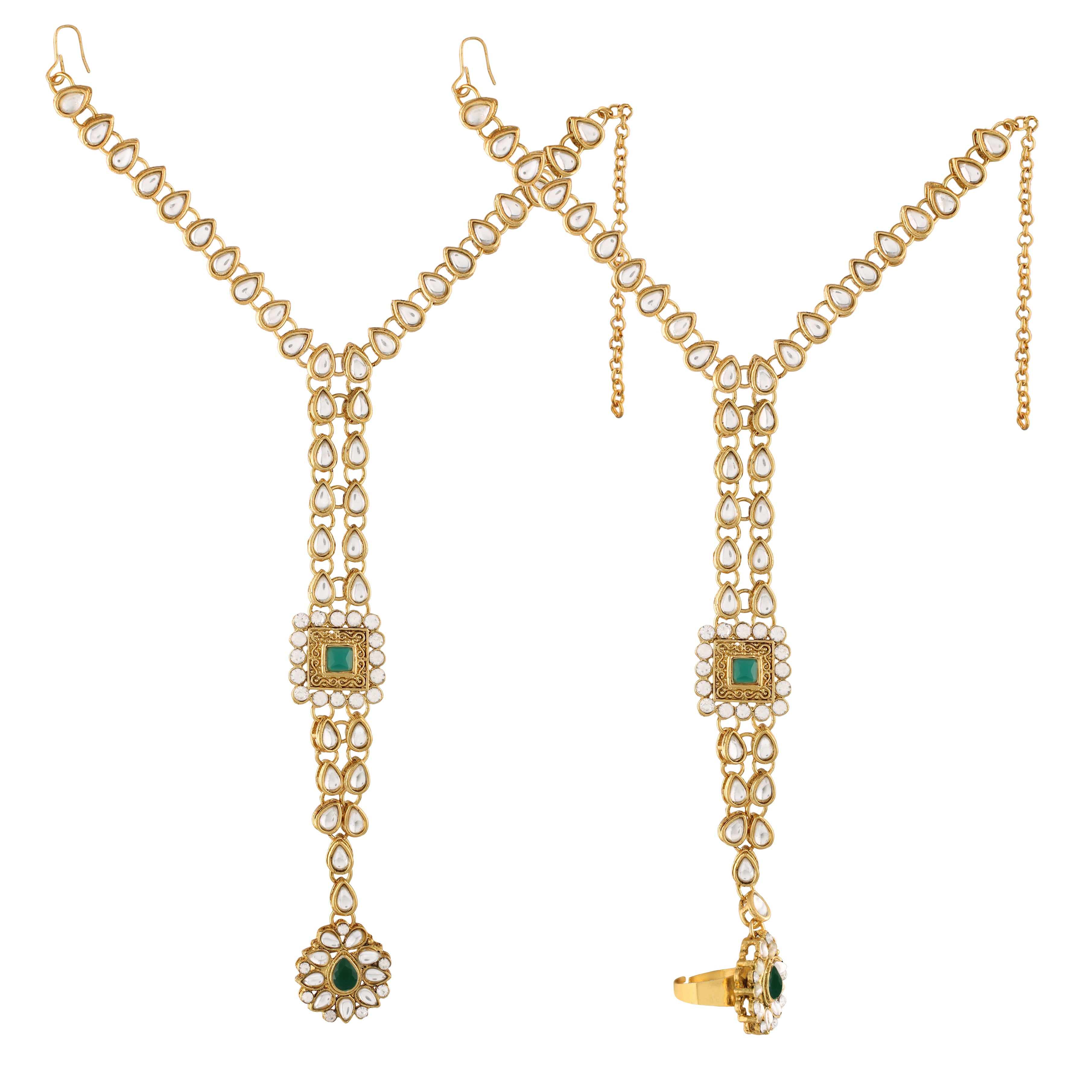 Bridal choker Set with Long necklace studded with Kundan & Pearls. This choker comes along with earrings, passa, haathpanja, nose ring & maang tikka. This captivating indian jewellery set is a great gifting option and is a perfect pick to add to your jewelry collection. You can style it with ethnic or western clothing.