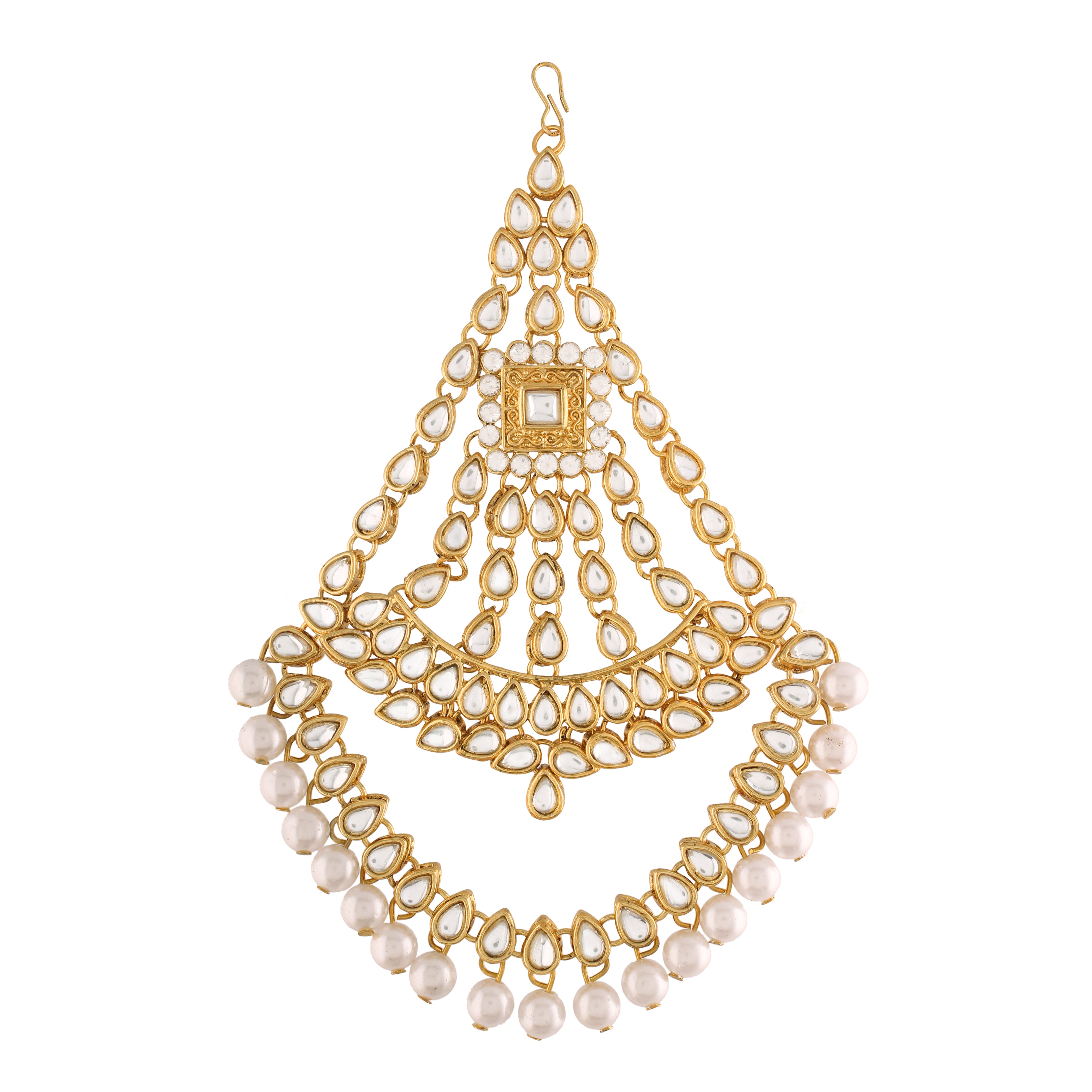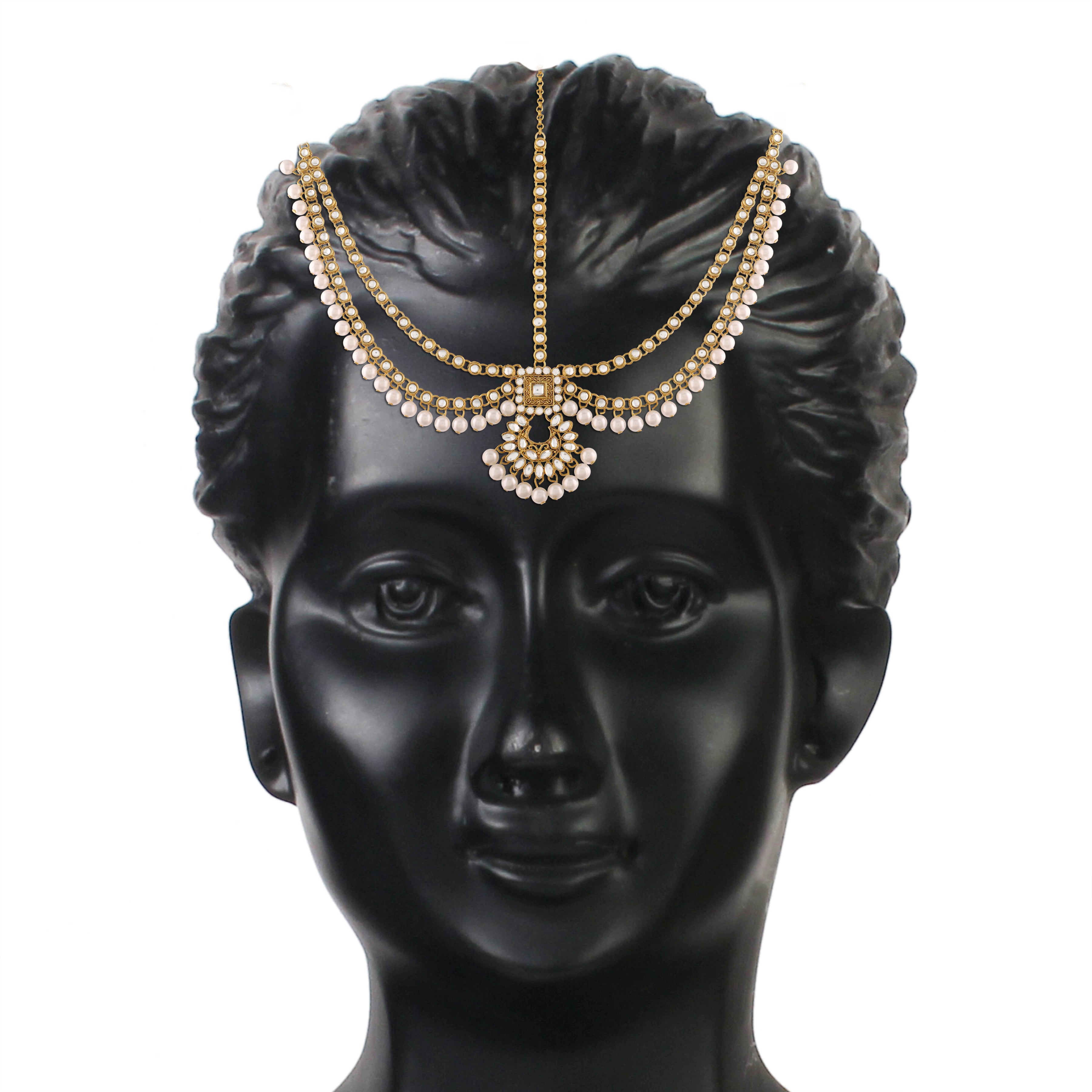 Bridal choker Set with Long necklace studded with Kundan & Pearls. This choker comes along with earrings, passa, haathpanja, nose ring & maang tikka. This captivating indian jewellery set is a great gifting option and is a perfect pick to add to your jewelry collection. You can style it with ethnic or western clothing.