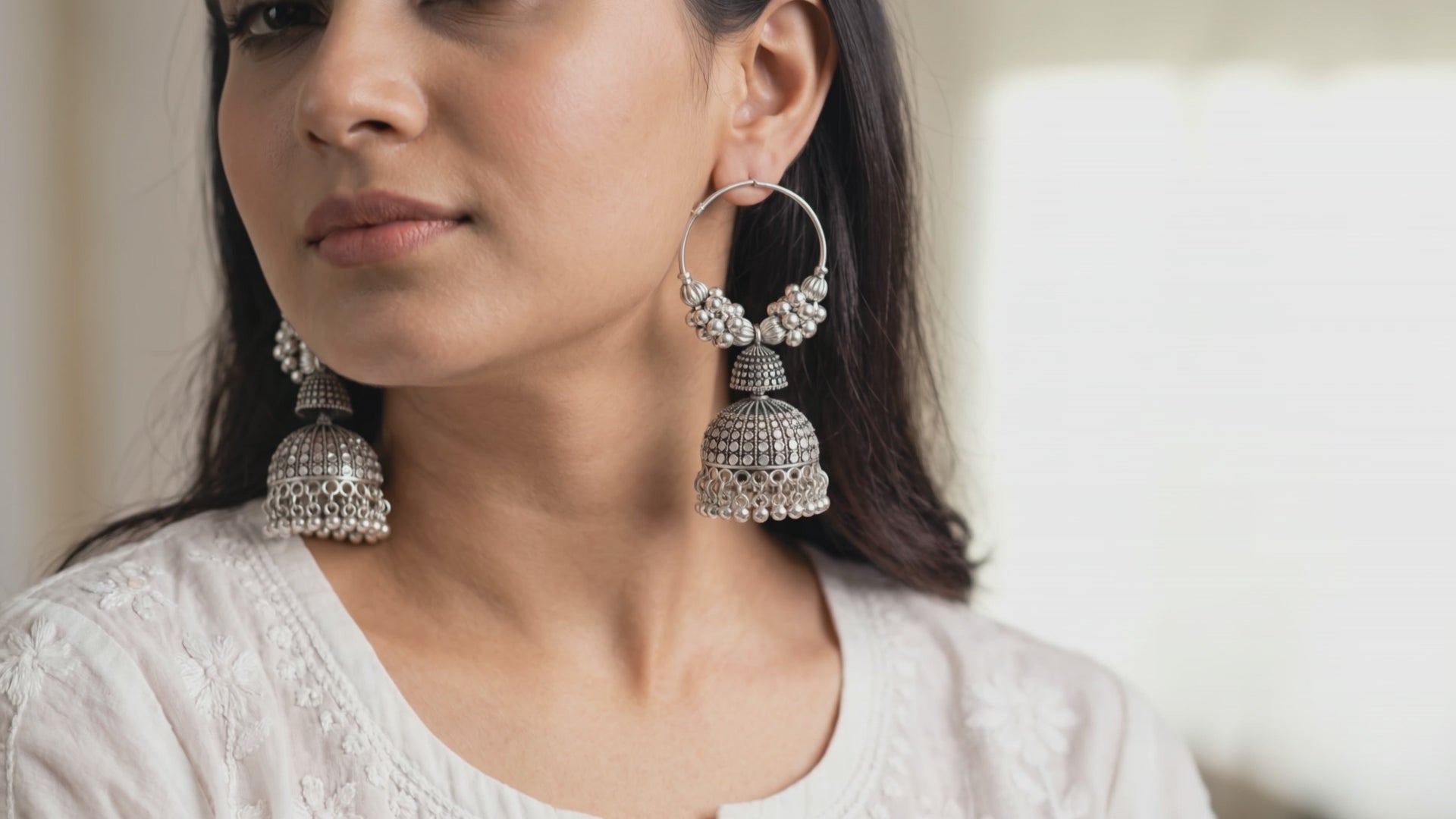 A fun twist to normal earrings that pep up your boring outfits. These earrings are crafted in oxidised silver that adds elegance to the look of it. these earrings are a one step solution to dressing up and ensure that this is the only accessory you need to finish your look. All of this with sheer lightweight- these will be your favourites this season.