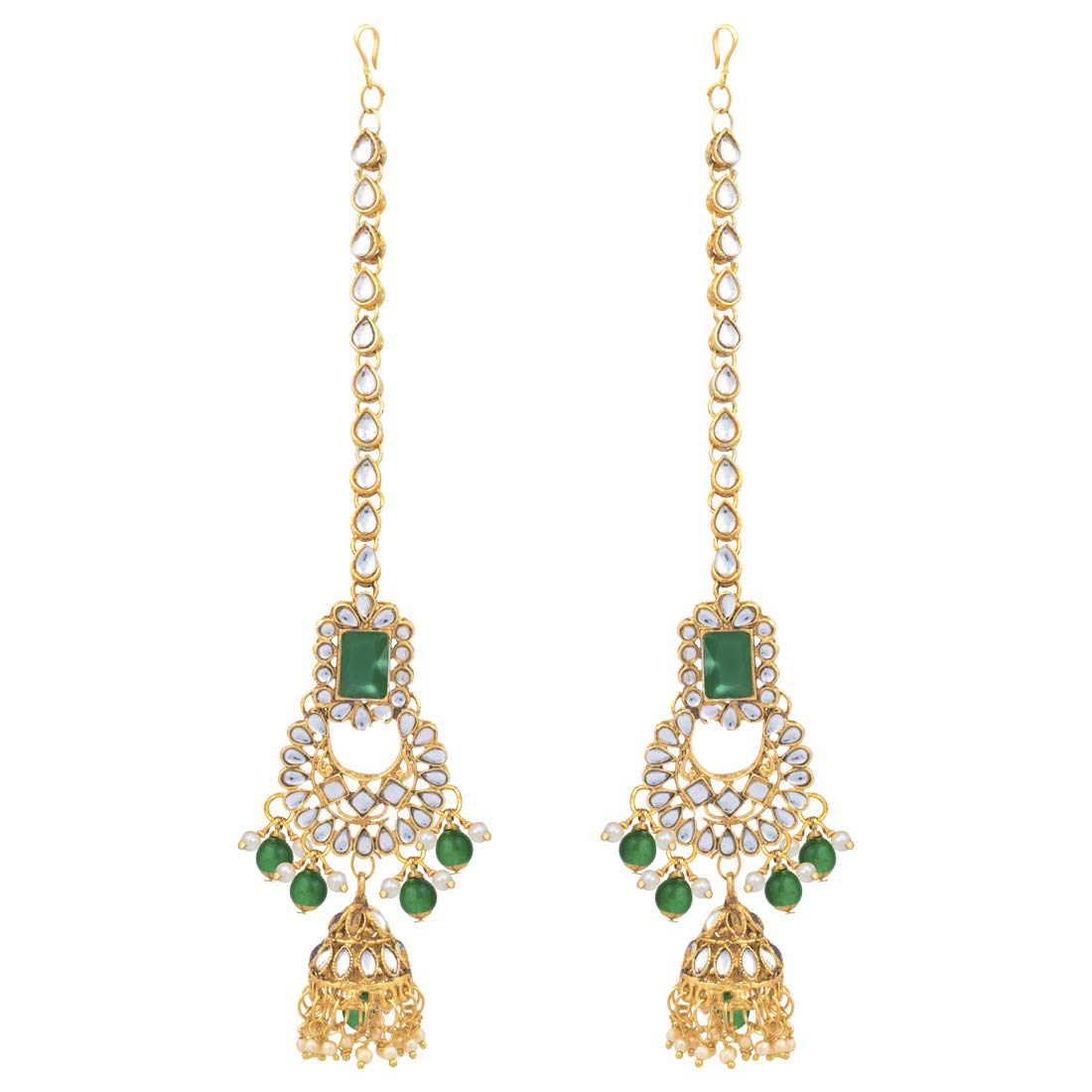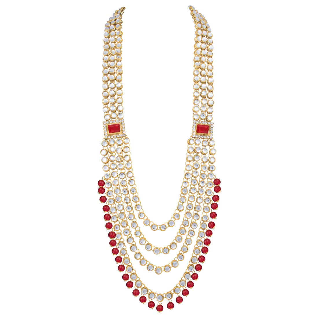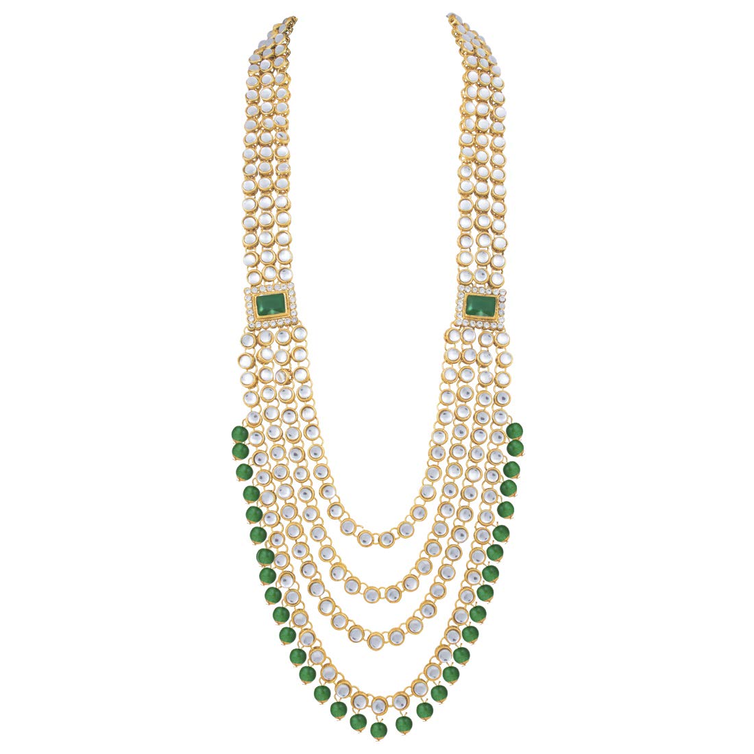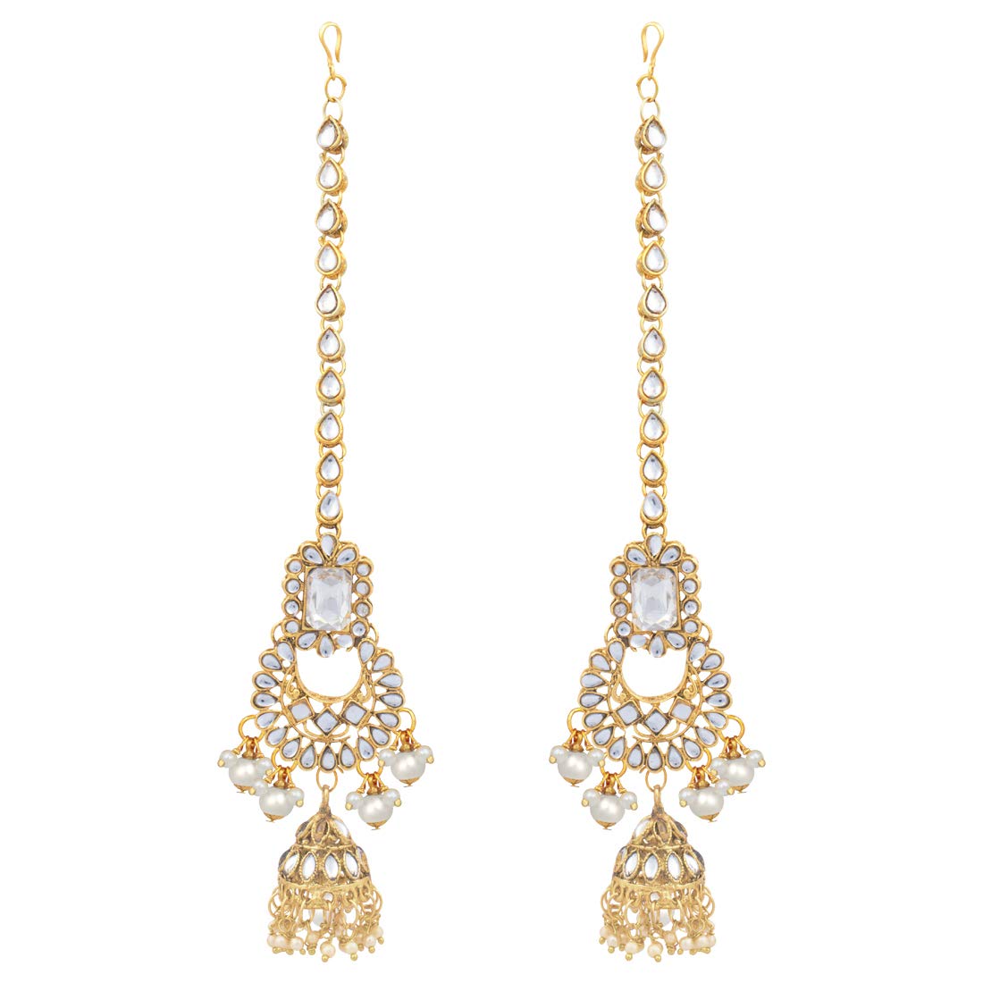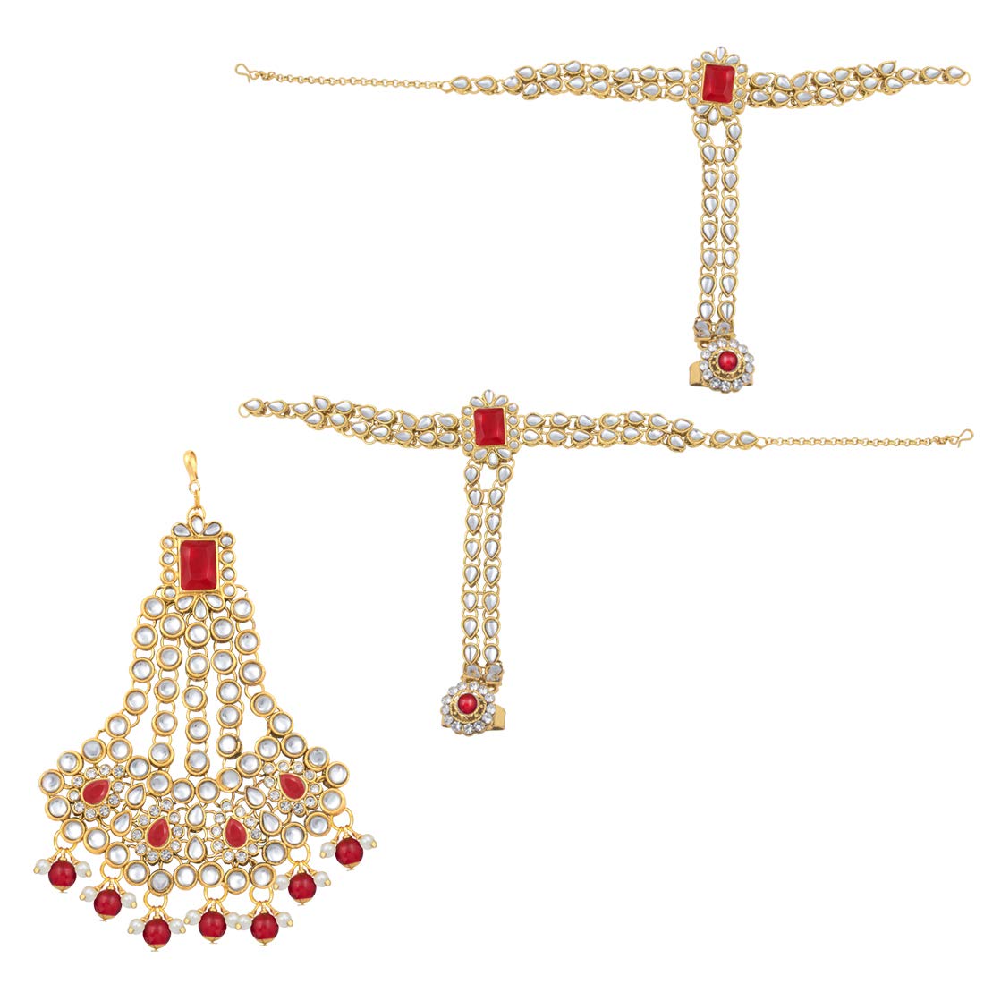 Bridal choker Set with Long necklace studded with Kundan & Pearls. This choker comes along with earrings, passa, haathpanja, nose ring & maang tikka. This captivating indian jewellery set is a great gifting option and is a perfect pick to add to your jewelry collection. You can style it with ethnic or western clothing.