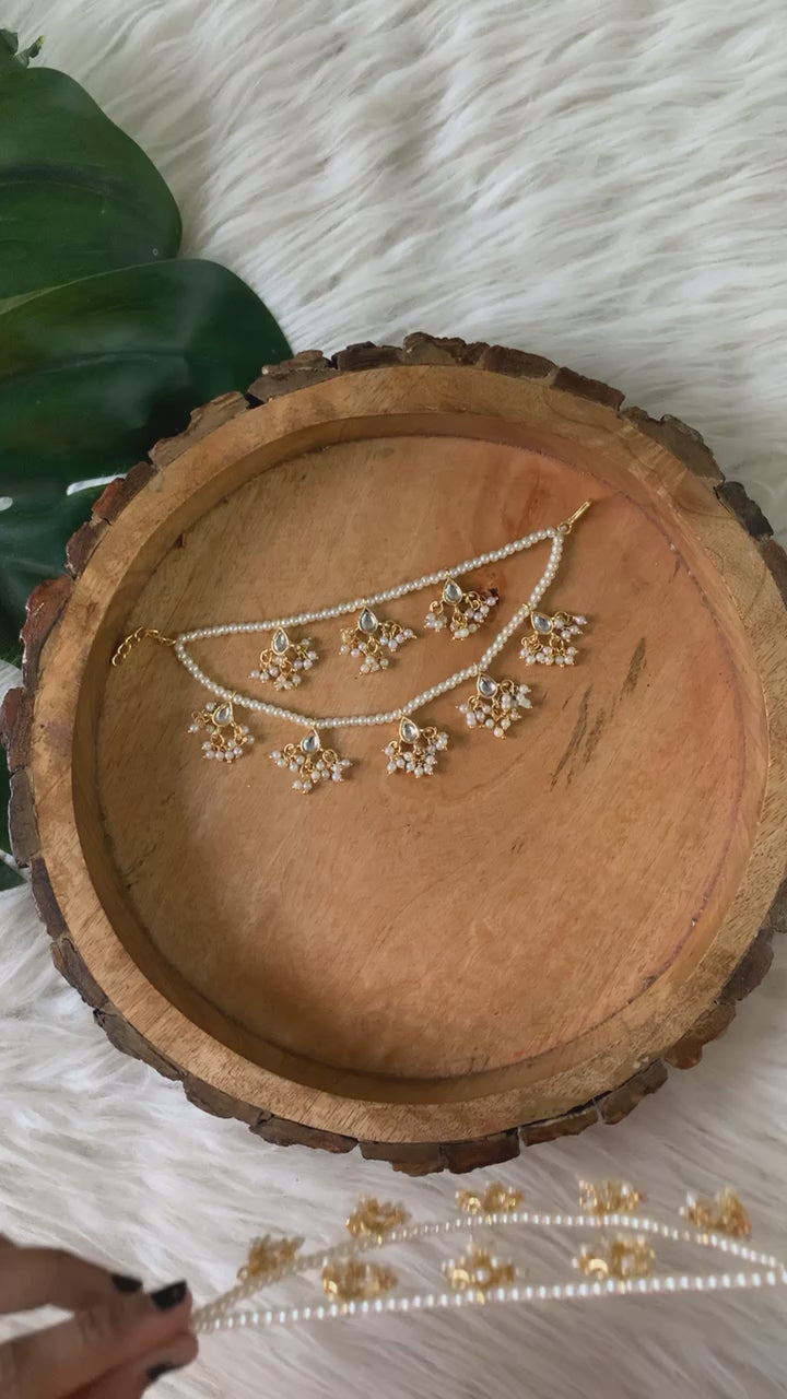 Zarini Earchain, a unique statement piece that adds the ultimate special touch to any outfit. Adorned with intricate kundan work, this accessory effortlessly elevates your style and provides that perfect appearance without trying too hard. Whether you're attending a special event or simply want to stand out, the Prashima Earchain works wonders and ensures you make a lasting impression.